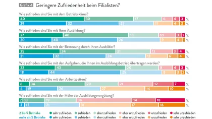 Wer jedoch mit der Ausbildung bei einem Mittelständler unzufrieden ist, plant häufiger einen Branchenwechsel als Auszubildende von Filialisten.