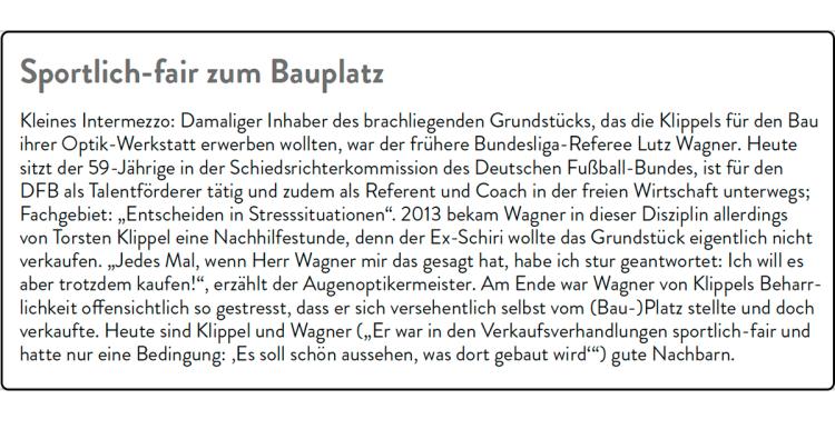Beim Hamburger Vorbild kann man übrigens tatsächlich auch tanken (oder soll es zumindest bald wieder können); anders als in Kriftel. Dort sind die Zapfpistolen abgeschlossen. „Aber gerade in den ersten Wochen haben bei uns tatsächlich täglich mehrere Leute angehalten und nach Benzin gefragt“, erzählt Klippel, und irgendwann habe sogar jemand vom Eichamt angerufen, der die Liter-Anzeige seiner Messgeräte überprüfen wollte, „aber da bin ich mir bis heute nicht sicher, ob uns da nicht einfach jemand einen Streich spielen wollte …“ In den ersten Wochen, das war konkret im März 2018, als die Klippels nach fünfjähriger Planungs- und Bauzeit an den neuen Standort umzogen. Bis dahin hatten sie ihren Betrieb in einem Ärztehaus in der Krifteler Innenstadt geführt, den der Vater von Simone Klippel dort 1978 eröffnet hatte. „Doch 2013 war das ursprünglich stimmige Konzept dieses Ärztehauses, das für eine dauerhaft hohe Kundenfrequenz gesorgt hat, aus unserer Sicht verwässert“, berichtet die Augenoptikermeisterin. Längst seien nicht mehr alle Einheiten von Ärzten oder Therapeuten genutzt worden, einige Praxen waren zu Wohnungen umgebaut worden und im Erdgeschoss war statt der Apotheke eine Versicherung eingezogen. Die Klippels begannen, sich Gedanken zu machen: „Noch lief es zu der Zeit ordentlich, wir hatten gut zu tun für die fünf Leute, die wir damals waren. Aber was würde in zehn oder 15 Jahren sein?“