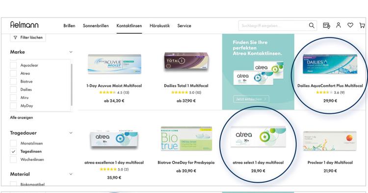 Im Mai 2021 launchte Fielmann die Kontaktlinseneigenmarke Atrea. Hergestellt werden diese derzeit von CooperVision und Alcon.