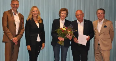 Für seinen herausragenden Einsatz für die Augenoptik bedankten sich die Mitglieder der AOI Westfalen bei Dieter Großewinkelmann mit der Wahl zum Ehrenvorsitzenden: (v.l.) Thomas Heimbach, Ute Limberg, Inge Großewinkelmann, Dieter Großewinkelmann und Diethard Pankatz.