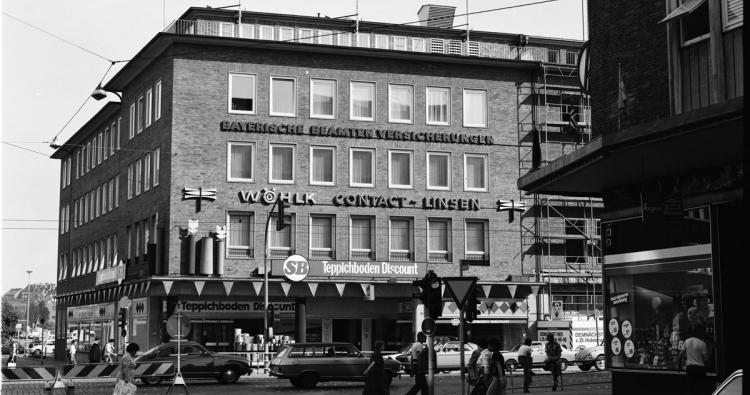 1949 eröffnete Heinrich Wöhlk in einer ausgebombten Wohnung sein erstes Ladengeschäft. Die Außenwerbung „Wöhlk Contact-Linsen“ prangte in Kiel später weitaus prominenter – wie hier zu sehen – an der Andreas-Gayk-Straße von der Wand. Das bekannte Geschäft existiert heute noch unter dem Namen Opticenter Rehm.