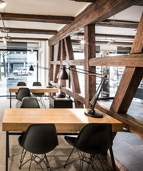 In einem historischen Fachwerkhaus in Winterthur befindet sich das Augenoptikgeschäft Bischofberger. Das Ladenbau-Konzept zeichnet sich durch seine Transparenz aus. Das Farb- und Materialkonzept aus schwarz und weiß, gerauchtem Glas, Natursteinwand und Messingakzenten erzeugt zusammen mit dem freigelegten Eiche-Fachwerk einen wohligen, warmen Gesamteindruck.