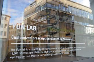 Die 140 Quadratmeter Verkaufsfläche verteilen sich auf das Erdgeschoss, in dem die Kunden Sonnenbrillen, Kinderbrillen und Korrektionsbrillen finden, und das Obergeschoss mit den Sportbrillen sowie der Refraktion und der Optometrie.