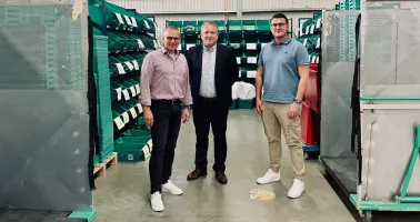 Wollen Demoscheiben einem Recyclingsystem zuführen: (v.l.) Pricon-Chef Matthias Köste, Mario Wyrwinski (Transmed Transport GmbH) und Louis Krall (Krall Kunststoff-Recycling GmbH).