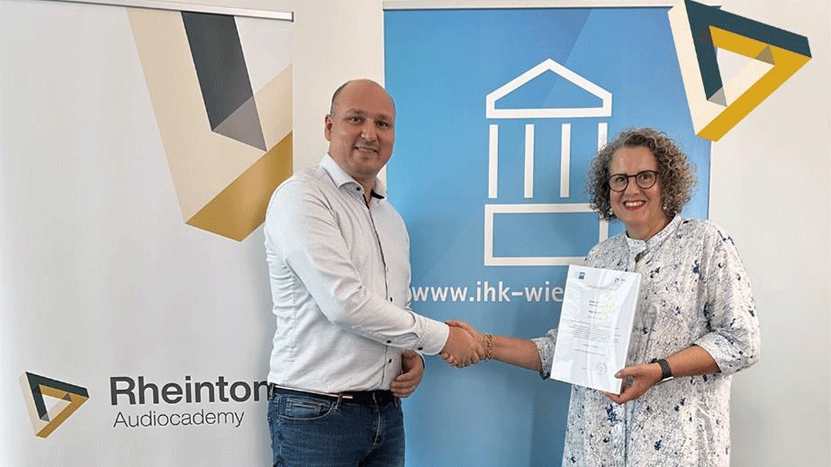 Der neuartige Kurs wird über eine Learning-on-Demand-Plattform in Form von Lernvideos vermittelt. „Die Lernenden können selbst entscheiden, wann, wo und wie oft sie die Inhalte über das Web oder die Rheinton-Lern-App abrufen“, erklärt Andreas Perscheid, Geschäftsführer der Rheinton Audiocademy. Die IHK Wiesbaden garantiert die Qualität der Kurs- und Prüfungsinhalte. Samira Gütlein-Seibel, Leiterin der Fachkräftesicherung bei der IHK, betont: „Mit Rheinton haben wir einen starken Partner, der uns in der nationalen Weiterbildungsstrategie unterstützt. In Zeiten des Fachkräftemangels bieten wir so eine krisensichere Perspektive in einem Zukunftsmarkt.“