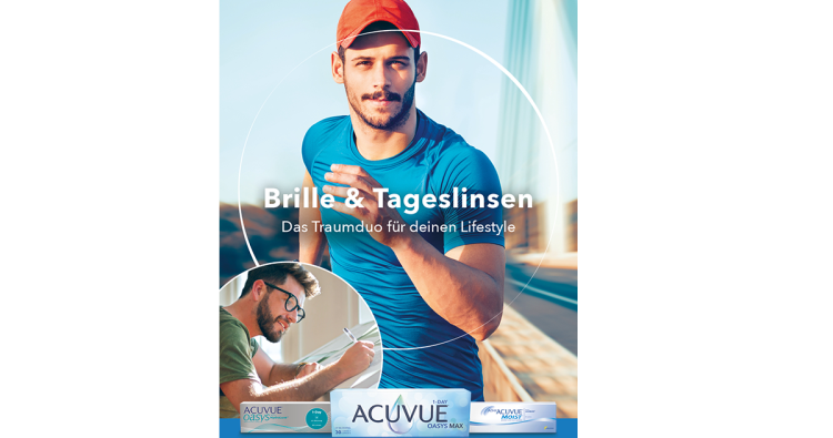 Kontaktlinsenhersteller Johnson & Johnson startet eine neue Endverbraucherkampagne unter dem Motto "Das Traumduo für deinen Lifestyle". Im Mittelpunkt steht dabei die Acuvue Tageslinse als "optimale Ergänzung" zur Brille. Denn laut Umfragen sind rund 65 Prozent der Brillenträgerinnen und Brillenträger offen für Kontaktlinsen. Nach Angabe des Herstellers können die augenoptischen Fachgeschäfte zudem bis zu 42 Prozent mehr Umsatz generieren und durch die höhere Besuchsfrequenz eine treuere Kundschaft gewinnen.