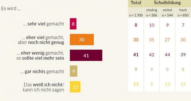 Die Befragung zeigt zudem, dass sich die jungen Menschen von der Politik im Stich gelassen fühlen: Jeder Zweite meint, dass die Politik wenig bis gar nichts für Ausbildungsplatzsuchende tue. Weitere 30 Prozent erkennen zwar Anstrengungen der Politik, bewerten diese jedoch als unzureichend.