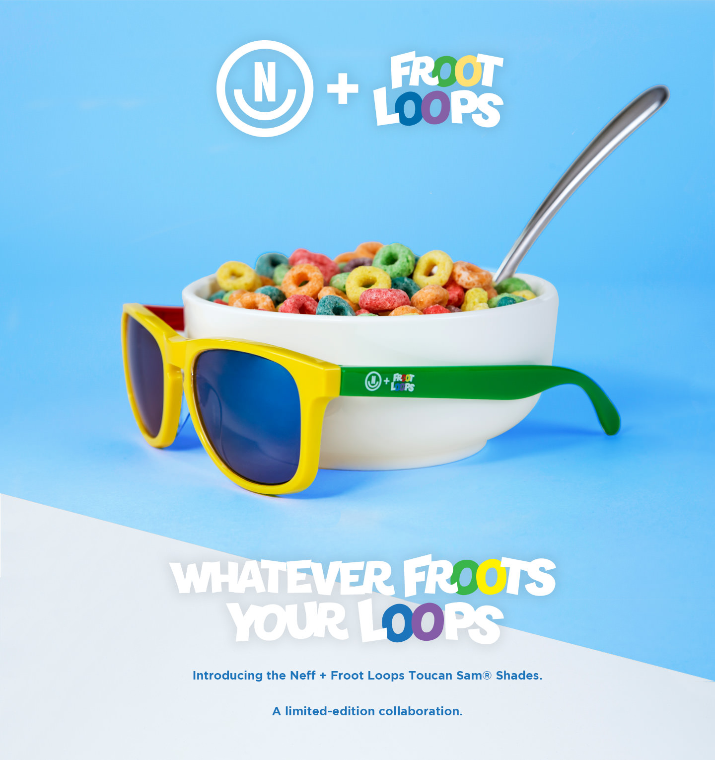 Die Sonnenbrillen mit den Namen Toucan Sam Shades sind inspiriert von den knalligen Farben der Froot Loops. Der Kunde erhält eine Art Cornflakes-Packung von Froot Loops, die mit unterschiedlichen Fassungen gefüllt ist. Die Sonnenbrillen können individuell verändert werden, da Gläser, Bügel und Fassungen austauschbar sind. Es sollen bis zu 80 verschiedene Designs möglich sein.