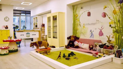 Die einladende Spielecke schafft bei Optik Kruse Zeit für ruhige, ungestörte Gespräche zwischen Eltern und Augenoptikerin. Oft kommen auch sehr persönliche Dinge zur Sprache.