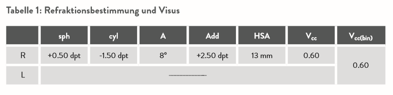Tabelle 1 zeigt die Werte der subjektiven Refraktionsbestimmung.