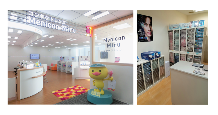 Die Kontaktlinsen-Stores werden entweder von Selbstständigen oder von den Kontaktlinsenherstellern selbst betrieben. So beispielsweise von Menicon, das bereits 1958 den ersten eigenen Store in Nagoya eröffnete, dem heute mit 2,3 Millionen Einwohnern viertgrößten Industriezentrum Japans. Heute laufen die Menicon-Shops unter den Namen „Miru“ und „Menicon Miru“ – und damit namensgleich zur auch hierzulande vertriebenen hauseigenen Produktlinie. Während es in Deutschland insgesamt circa 11.000 augenoptische Betriebe gibt, findet man in ganz Japan alleine über 10.000 reine Kontaktlinsen-Stores – einzige weiße Flecken sind ein paar wenige abgelegene Inseln. Dabei kommen die Stores in ihrer Aufmachung höchst unterschiedlich daher: Manche sind kaum größer als ein kleiner Kiosk hierzulande, mitunter in die Jahre gekommen und mit rustikaler Holzvertäfelung, andere, gerade die herstellereigenen, punkten durch helle und offene Ladenflächen und weisen eher die Größe einer Boutique auf.