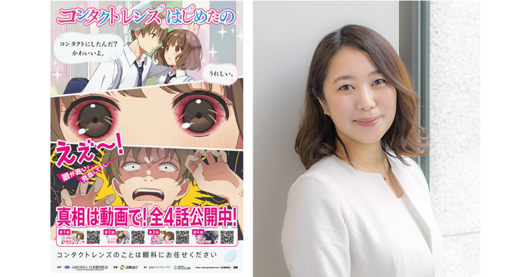 Trotz dieser Regelungen und Empfehlungen gibt es auch in Japan Möglichkeiten, Kontaktlinsen ohne vorherige Anpassung oder regelmäßige Nachkontrollen online oder in Shops zu kaufen. Dies führt dazu, dass die Zahl der Patienten mit Augenbeschwerden aufgrund falscher Pflege und Handhabung in den Praxen von Akari Yui und Takashi Suzuki steigt. „Die häufigsten Ursachen sind Schmutz und Bakterien, die sich aufgrund mangelnder Pflege auf der Linsenoberfläche ansammeln, oder die Reinigung der Kontaktlinse mit Leitungswasser“, erklärt Akari Yui. Um diesem wachsenden Problem entgegenzuwirken, das vor allem bei jüngeren Japanern auftritt, arbeiten Branchenverbände wie die Ophthalmologen- oder die Kontaktlinsenvereinigung, die aus Interessenvertretern der Herstellerfirmen besteht, zusammen. Neben der Einführung des Tages Kontaktlinse am 10. September und des Tages der Augengesundheit am 10. Oktober führen die Verbände Sensibilisierungsveranstaltungen durch, verteilen Poster und laden Aufklärungsvideos auf Plattformen wie Tiktok & Co. hoch. Um die jüngere Zielgruppe stärker für die Thematik zu interessieren, wurden die Videos und Poster teilweise im Anime- und Manga-Stil gestaltet, die in Nippon fest zur Kultur gehören.