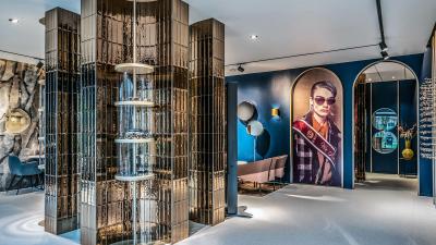 Augenoptiker Panis Eyewear nach dem Umbau Lichtdesign, "Eklektischer Stil- und Materialmix"