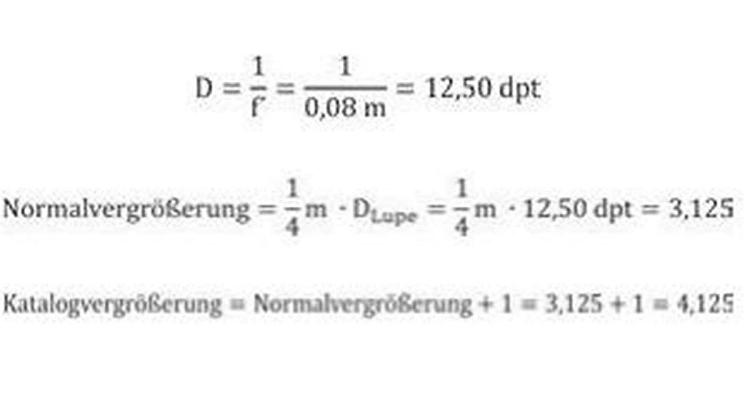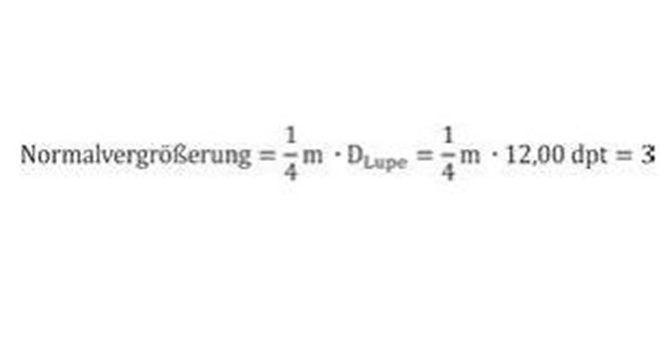 Die Brechkraft einer Lupe beträgt 12,00 dpt. Welche Normalvergrößerung besitzt diese Lupe?