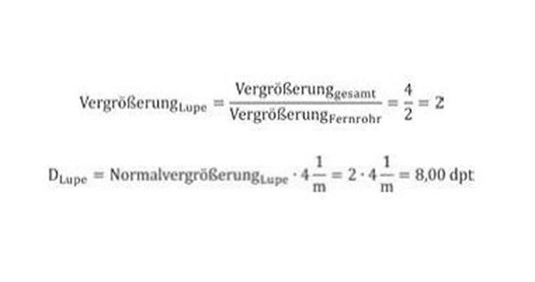Um die maximale Vergrößerung zu erzielen und fernakkommodiert durch die Lupe schauen zu können, muss