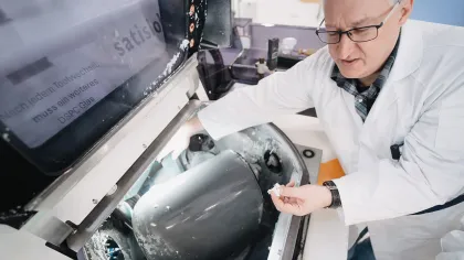 Das Thema Nachhaltigkeit zeigt sich auch bei den Blanks. Diese werden in ihrer Rohform kontinuierlich dünner gemacht, um den Materialverbrauch zu reduzieren. „Dafür sind unsere Experten unzählige Male zu den Produzenten der Halbfabrikate in Asien geflogen“, sagt Werksleiter Gronau. Rund 3,7 Liter pro Glas fallen dennoch allein in Sachen Wasserverbrauch an; bei jährlich 700.000 Gläsern, die das Werk in Braunschweig verlassen, macht das fast 2,6 Millionen Liter Wasser. Als besonders energieintensiv stellt sich im Lauf des Rundgangs die Entspiegelung heraus: Unter Vakuum werden in bis zu 20 Schritten unterschiedliche Schichten aufgedampft. „Für jede Seite des Brillenglases dauert dies 45 Minuten“, erklärt Sven Hahn, Prozessmanager und seit 18 Jahren im Unternehmen.