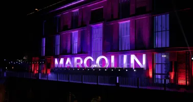 Die Triennale Milano, das Haus des Designs, der Architektur und der visuellen Künste im Herzen von Mailand, bot dabei als Location den passenden Rahmen. Abschließender Höhepunkt war ein DJ-Set auf der Terrazza des Salone d'Onore, einer malerischen Terrasse mit Blick auf die Gärten des Museums, wo sich zeitgenössische Kunstwerke in das üppige Grün des Parco Sempione einfügen. Passend zu den Klängen der Lautsprecher wurde das Marcolin-Logo in drei Meter großen Lettern auf die Fassade des Salone d'Onore projiziert.