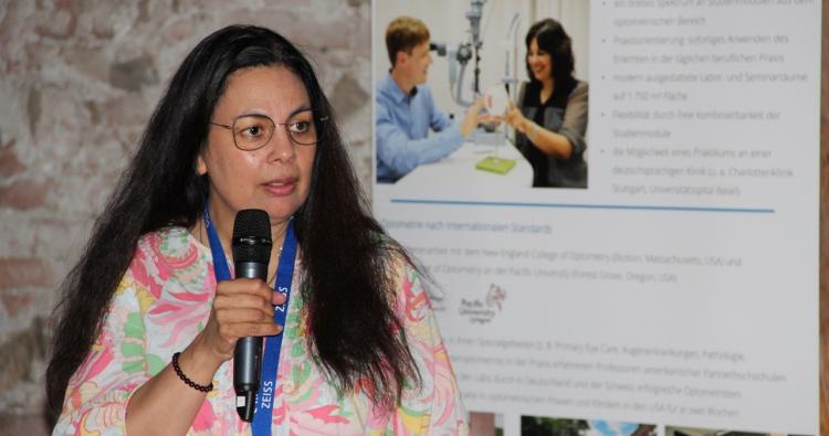 Prof. Bina Patel trägt ihre neuesten optometrischen Erkenntnisse den Masterstudierenden vor