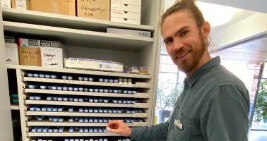 Max Hofmann hat ein über 1.000 Kontaktlinsen großes Lager, in dem er bereits viele Messlinsen direkt zur Verfügung hat. Zusätzlich gibt es noch ein kleines Weichlinsen-Lager.
