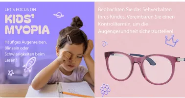 Ziel ist es laut einer Mitteilung von Essilor, auf frühe Anzeichen von Myopie bei Kindern aufmerksam zu machen – etwa häufiges Blinzeln, Augenreiben oder das sehr nahe Sitzen am Bildschirm – und Eltern zur professionellen Beratung und dem Besuch bei einem Augenoptiker zu motivieren.