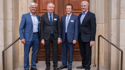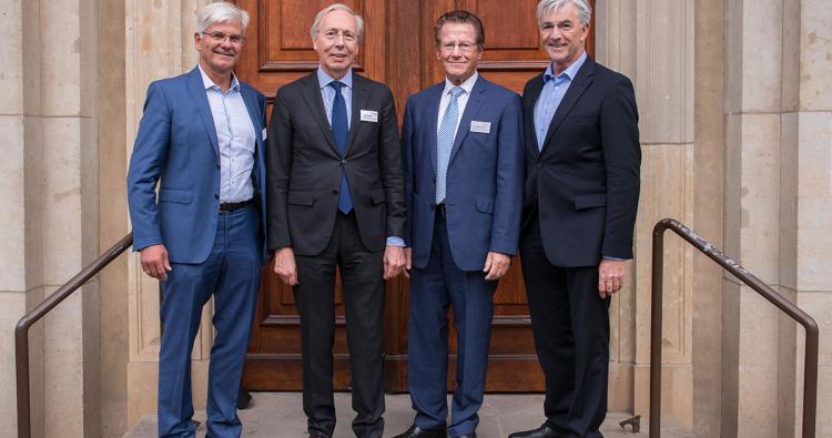 Josef May (r.) konnte die anwesenden langjährigen Vorstandsmitglieder persönlich verabschieden: Dr. Michael Kleer, Ludolf Schmitz sowie Dr. Steffen Gebauer (v.l.).