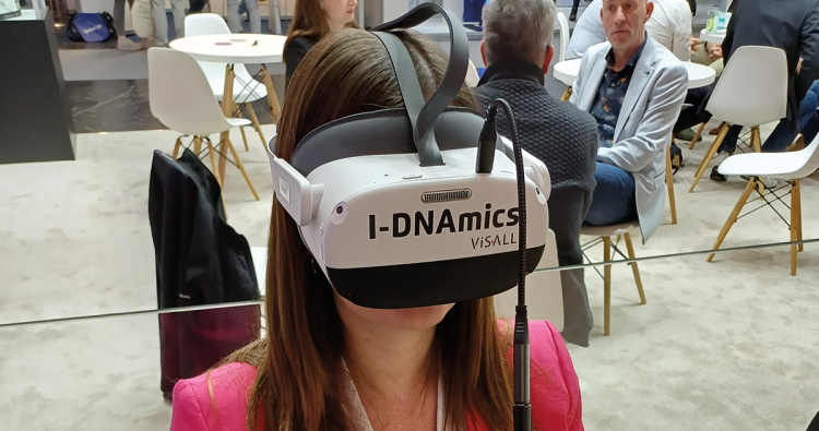 „Den Kolibri bitte immer im Blick behalten.“ DOZ-Redakteurin Lisa Meinl testete die VR-Brille zur Messung der Kopf- und Blickbewegungen, deren Ergebnisse in die neuen „I-DNAmics“-Gläser von Visall einfließen.