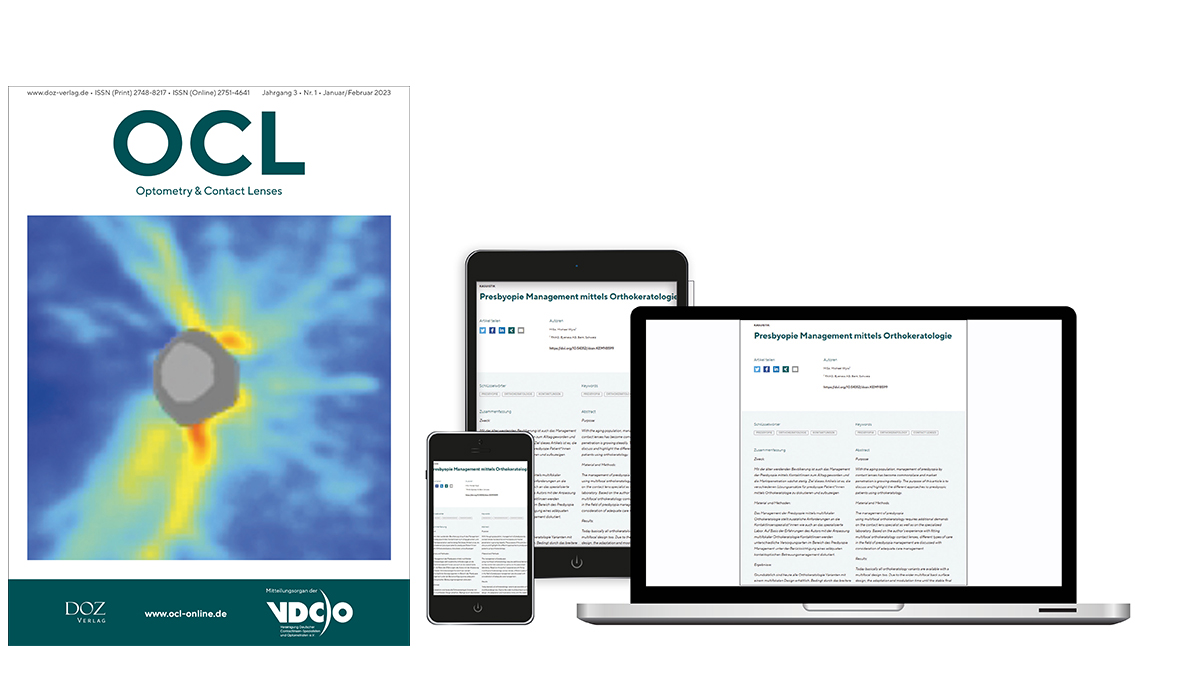 Optometry & Contact Lenses (OCL) hat es sich zum Ziel gesetzt, Klinikern und Wissenschaftlern aus den Berufsständen der Optometrie und Ophthalmologie ein hochkarätiges Forum zu bieten, neue auf Evidenz basierte Forschungsergebnisse aus dem Gesamtbereich Eye and Vision Care einem breiten internationalen Leserkreis zu präsentieren.