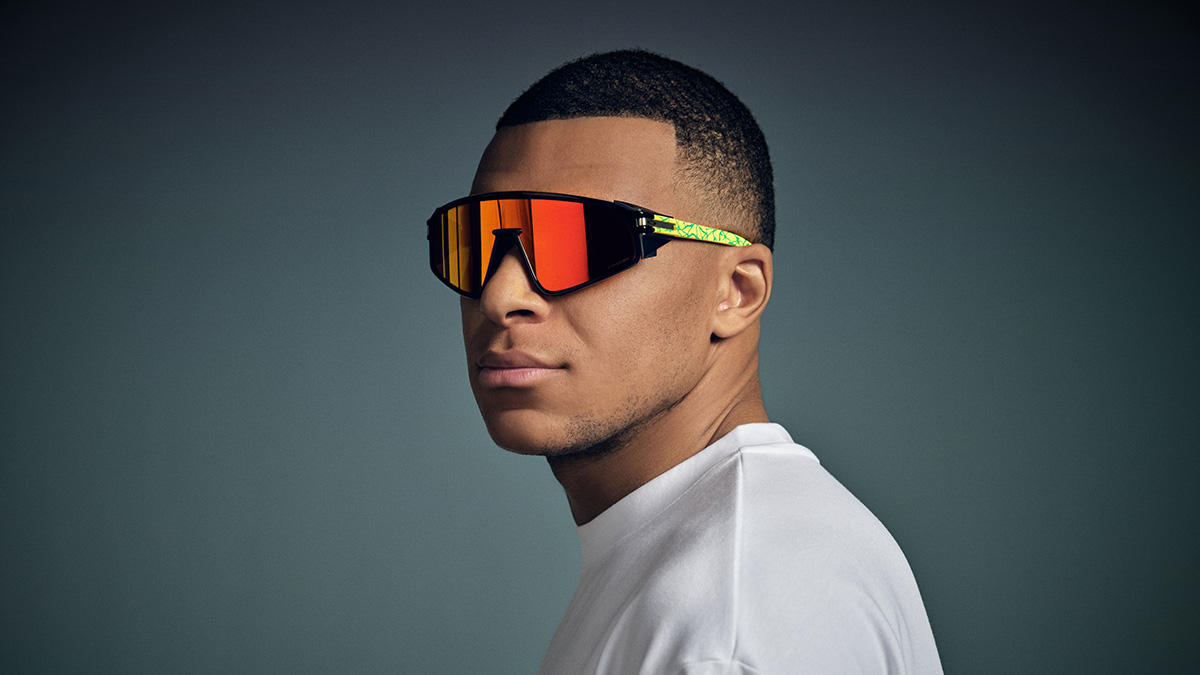 Spitzensportler wie der französische Fußballer Kylian Mbappé werben für die neue Sportbrillen-Kollektion von Oakley.