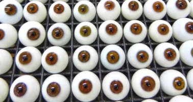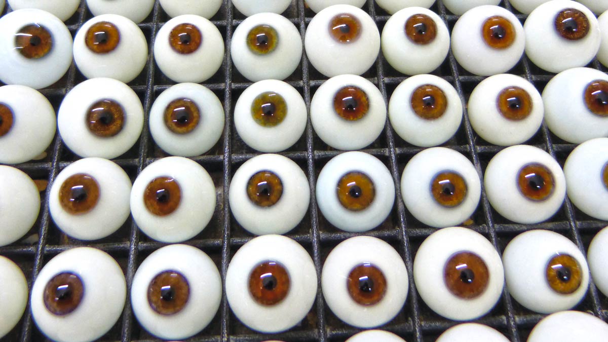 Vom Neugeborenen bis zum Rentner umfasst das Patientenspektrum eines Ocularisten alle Altersschichten. Doch nicht nur die Altersspanne ist groß, auch die Gründe für das Tragen eines Kunstauges sind vielfältig. „Anopthalmus, Retinoblastom, (Auto-)Unfälle und Kriegsverletzungen sind die Hauptgründe. Arbeitsunfälle, Pilzinfektionen durch unzureichende Kontaktlinsenreinigung oder Suizidversuche mit Schusswaffen gehören ebenfalls dazu“, erklärt Yannick Müller-Uri. Seine Vorfahren gründeten die Deutsche Ocularistische Gesellschaft (DOG), er leitet in sechster Generation das „F. Ad. Müller Söhne – Institut für künstliche Augen“ in Wiesbaden. Dort bewahrt er etwa 45.000 Augenrohlinge in Schubladen auf, etwa 11.000 werden europaweit jährlich an den Patienten gebracht. Die Krankenkasse zahlt Ocularisten einen Standardsatz von 483 Euro pro Auge, bei Spezialversorgungen einen Aufschlag. Öffnet man eine der Schubladen im Institut, blickt man auf Rohlinge, die bereits einem Originalauge ähneln. Diese kommen rund zwei bis sechs Wochen nach einer operativen Behandlung des erblindeten Auges zum Einsatz. Zu diesem Zeitpunkt ist die Augenhöhle annähernd ausgeheilt und der Patient erhält sein erstes Kunstauge. Allerdings nur, wenn das Auge komplett erblindet und der Augapfel beschädigt ist. Bei intakten Augäpfeln normaler Größe und bei Restsehen wird keine Prothese eingesetzt. „In diesem Fall sind Augenoptikerinnen und Augenoptiker als Anpasser von Irisfarbkontaktlinsen gefragt,“ erklärt Müller-Uri.