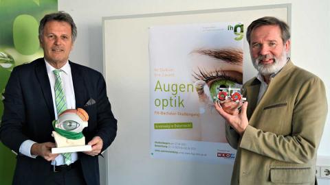 Bevor die 20 Studierenden Ende September ihr Studium aufnehmen konnten, mussten sie im Rahmen eines mehrstufigen Aufnahmeverfahrens nachweisen, dass sie „mit viel Motivation, Interesse für Technik und Naturwissenschaften und manuellem Geschick geeignet sind, diesen diffizilen Beruf zu erlernen“. Dem Ruf der FH Gesundheit, die nun „erstmalig im ganzen Land den FH-Bachelor-Studiengang in der Augenoptik“ anbietet, sind Studierende aus fast allen Teilen Österreichs gefolgt. FH-Rektor Walter Draxl und Studiengangsleiter Gustav Pöltner begrüßten die Studierenden während einer Auftaktveranstaltung. In dem drei Jahre währenden Studium werden nun in zahlreichen Lehrveranstaltungen und Praktika jene Fähigkeiten und Fertigkeiten vermittelt, welche für eine qualifizierte Berufsausübung in der Augenoptik benötigt werden.