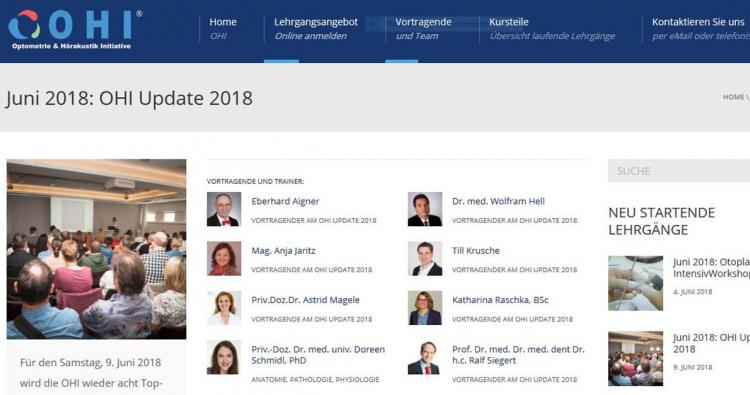 TeilenIn knapp zwei Wochen findet das OHI Update 2018 statt. Am Samstag, 9. Juni, lädt die Optometrie & Hörakustik Initiative (OHI) nach Wien zum fachlichen Austausch. Geboten werden vier Augenoptik/Optometrie- und vier Hörakustik-Vorträge - zeitgleich in zwei Sälen. Die Initiative rechnet für dieses Jahre mit mehr als 200 Teilnehmern und rund 25 Industrieausstellern.