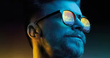 Echter Hingucker: Die neuen verspiegelten Brillengläser mit Farbverlauf setzen farbliche Akzente.