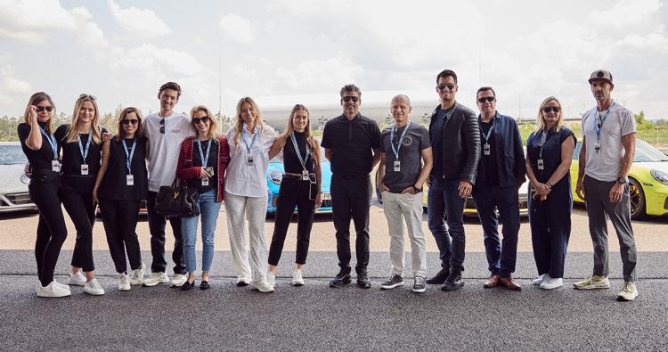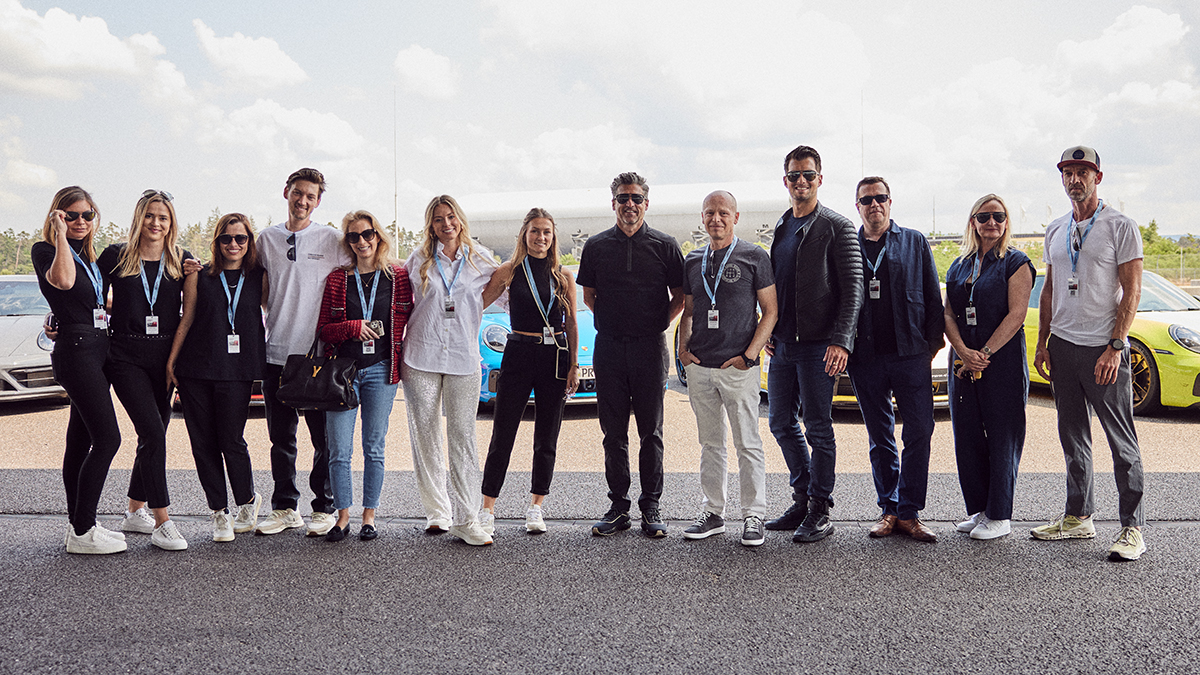 Eine echte Porsche Experience: Im Juni nahm DOZ-Online- Chefredakteurin Angelika Miller (Mitte) am Presseevent von Porsche Design teil. Neben einer Rennfahrt auf dem Hockenheimring wurde auch die neue Brillenkollektion in Kooperation mit dem Schauspieler (6. von rechts) exklusiv vorgestellt.