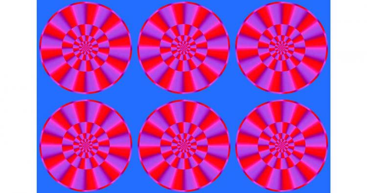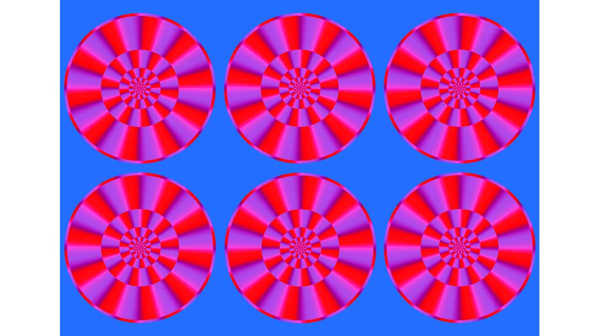 Akiyoshi Kitaoka, Professor der Psychologie an der Ritsumeikan-Universität im japanischen Kyoto, beschäftigt sich seit 1991 intensiv mit optischen Phänomenen und wurde vor allem mit der Darstellung von Drehtäuschungen international bekannt. Am populärsten sind seine vielfach ausgezeichneten „Rotating Snakes“: Beim spontanen Draufschauen scheinen sich die Kreise zu drehen. Seinem Kollegen und langjährigen Freund Bernd Lingelbach hat er nun mehrere Motive zur Reproduktion überlassen.