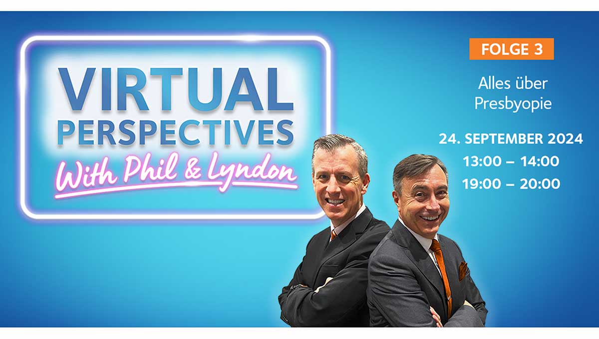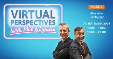 Am 24. September veranstaltet CooperVision den dritten Teil der Online-Weiterbildungsreihe „Virtual Perspectives“. Das einstündige Webinar wendet sich an Augenspezialisten und -spezialistinnen sowie augenoptisches Fachpersonal und Studierende. Die renommierten Professoren Philip Morgan und Lyndon Jones sprechen mit ihren Gästen über die neuesten Trends und Forschungsergebnisse auf dem Gebiet der Presbyopie und teilen klinische und praktische Erfahrungen bei der Versorgung mit multifokalen Kontaktlinsen.