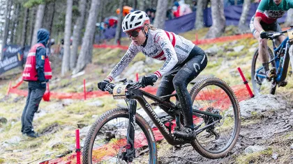 Das Regenbogentrikot macht Lust auf mehr! Nicht erst bei der Radsport-WM in den Wäldern des Glentress Forest im Norden Schottlands zeigte sich: Mona Mitterwallner hat Spaß am Siegen. In ihrem zweiten Elite-Jahr 2023 schaffte die junge Tiroler Mountainbikerin kurz nach der WM ihren ersten Weltcupsieg im olympischen Cross-Country. Dabei legt sie schon mal, wie in Schottland, 3.200 Höhenmeter und 96 Kilometer auf ihrem Boliden zurück, abseits befestigter Straßen quer durch das Gelände. Seit zwei Jahren fährt Mitterwallner für den Rennstall Cannondale Factory Racing, wie sie sagt, „definitiv eines der bestens Teams im Weltcup, mit dem wir große Ziele anvisieren.“