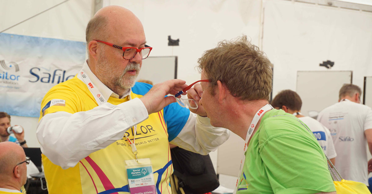 Maralen Busche gehörte zu den vielen weiteren Helfern; sie verantwortet im Country Product Management bei Essilor unter anderem Transitions: „Es macht super viel Spaß mit den Athletinnen und Athleten zusammenzuarbeiten und mit ihnen Korrektionsbrillen und Sonnenbrillen auszusuchen (...).“ Auch Jörg Michael Seringer, Sales Representative Essilor, war helfend dabei: „Eine gigantische Veranstaltung, eine großartige Stimmung. Diese Euphorie, diese Freude und dieses Leuchten in den Augen der Athleten, die Freude über die neue Brille; das ist Gänsehaut-Feeling pur.“ Bereits seit 2002 unterstützt Essilor die Special Olympics mit dem Opening Eyes Programm, bietet Sehtests an und vergibt kostenfrei Brillen an die Athleten. Ziel der Sportbewegung Special Olympics ist es, die Sportler durch Augenprüfungen und die anschließende Sehversorgung ganzheitlich zu fördern.