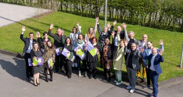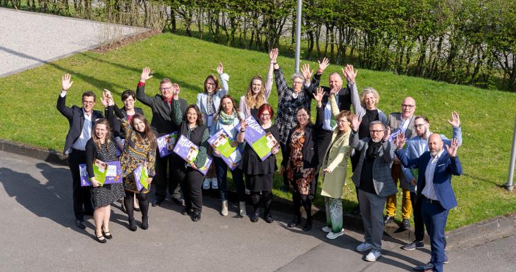 Großer Jubel: Die ersten 14 Absolventinnen und Absolventen der neuen Qualifikation „Assistent/-in der Augenoptik (IHK)“ erhalten ihre Zertifikate.