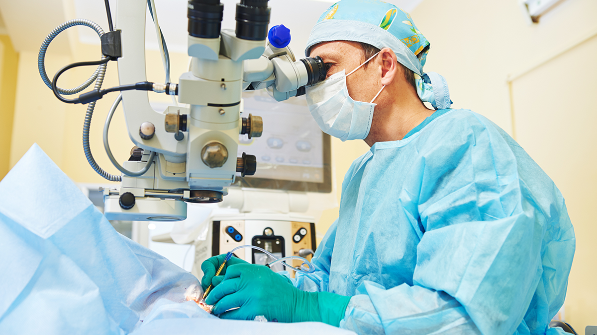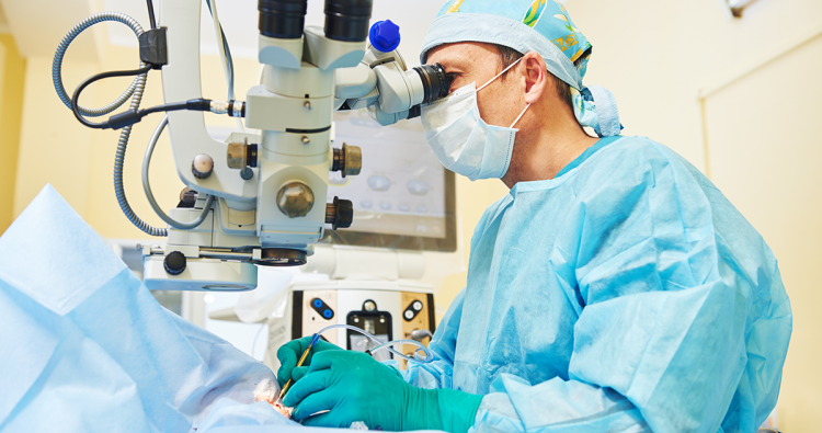 Eine Hornhauttransplantation ist ein augenchirurgischer Eingriff.