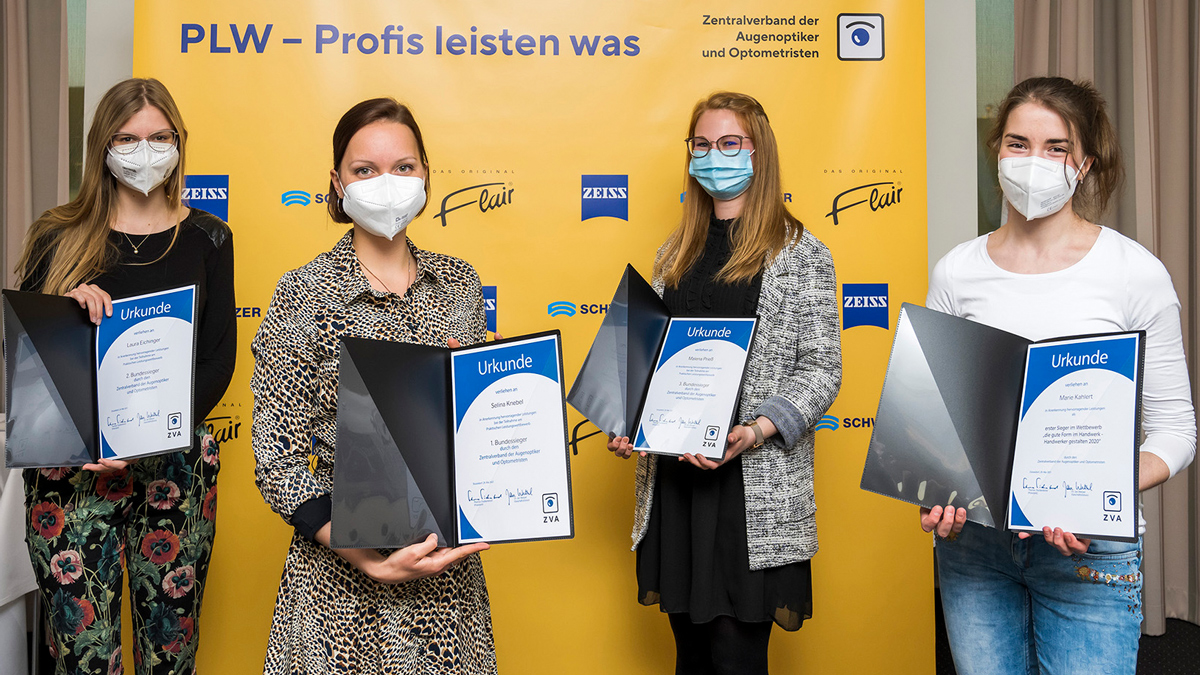 Im Anschluss des Wettbewerbs fand im BZAO mit viel Abstand die Siegerehrung statt. Rainer Hankiewicz, Vorstandsmitglied des Zentralverbandes der Augenoptiker und Optometristen (ZVA) sowie Vorsitzender des ZVA-Berufsbildungsausschusses (BBA) und Mitglied der Jury, lobte die herausragenden Leistungen der Teilnehmer. ZVA-Vizepräsident und BBA-Mitglied Dieter Großewinkelmann beglückwünschte die Siegerinnen. Der Wettbewerb musste aufgrund der Corona-Pandemie vom 14. November 2020 auf den 29. Mai dieses Jahres verschoben werden und fand somit erstmalig nicht im eigentlichen Jahr der Gesellenprüfung statt, deren Ergebnis entscheidend ist für die Teilnahme.
