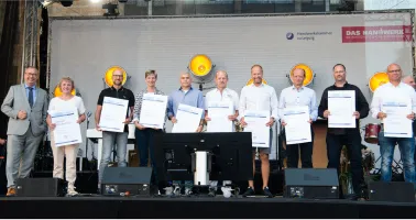 EUHA-Präsidentin Beate Gromke (vierte von links) erhielt den Silbernen Meisterbrief der Hörakustik.