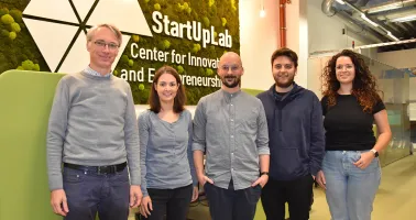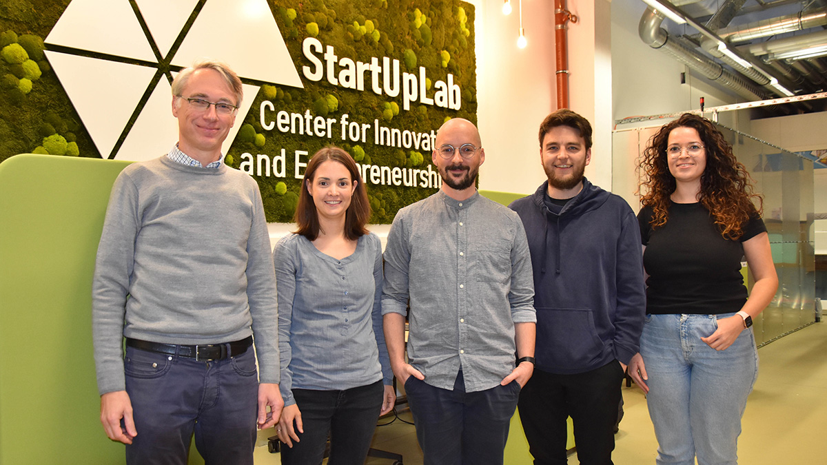 V.l.: André Kabeck (Gründungsservice der EAH Jena), Dr. Ilka Urban, Dr. Markus Leicht, Nico Trinks und Christina Nolte.