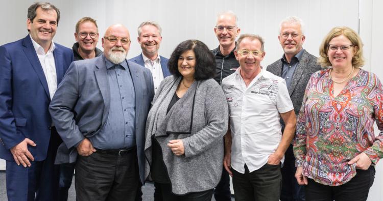 SWAV-Geschäftsführer Peter Kupczyk und der neugewählte Vorstand des SWAV: Daniel Raabe, Andreas Müller, Gunther Oesker, Monika Rasche-Vitallowitz, Ralph Bänsch, Edwin Deutelmoser, Matthias Müller, Patricia Fuchs (v.l.n.r.; es fehlt: Ruth-Silke Lenk-Dross).