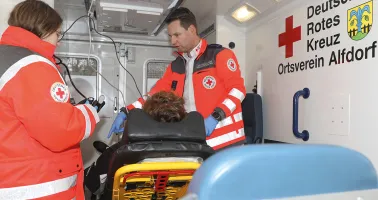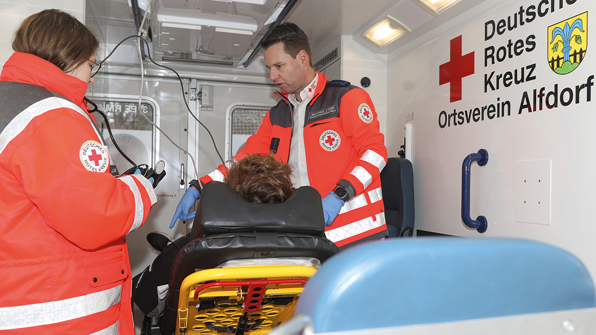 Augenoptikermeister Michael Linde im ehrenamtlichen Einsatz: Der 43-Jährige ist Zugführer im Bevölkerungsschutz beim Deutschen Roten Kreuz.
