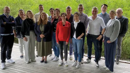 Während des Workshops in München steckten die GHM, die Agentur Spotleit und Vertreterinnen und Vertreter zahlreicher Kontaktlinsenfirmen die Köpfe zusammen. Die Zeit für ein Gruppenfoto wurde sich trotzdem genommen.