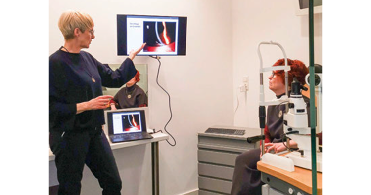 Bei der Kontaktlinsenanpassung ist die Spaltlampe nicht wegzudenken, doch wie sieht es abseits der Linse aus? Optometrische Dienstleistungen werden von immer mehr augenoptischen Fachbetrieben angeboten und die Spaltlampe, die zumeist für die Kontaktlinsenanpassung im Betrieb vorhanden ist, kann im optimalen Fall an Computer und Software angeschlossen und so zusätzlich genutzt werden. Die Ounda GmbH legt großen Wert auf den Ausbau der Optometrie und ermutigt ihre Betriebe, sich in diesem Bereich fortzubilden (siehe dazu das Interview mit dem damaligen CEO Dieter Meis in der DOZ 09|22). Ute Heimbach, zertifizierte Fortbildungstrainerin und Petra Lindner, Leiterin Augenoptik/Optometrie bei Ounda, erarbeiteten das Konzept; entstanden sind unter anderem zwei Handouts, die den Ablauf einer optometrischen Untersuchung an der Spaltlampe erklären und die jeder Schulungsteilnehmer erhält. Zusätzlich kann jeder Ounda-Betrieb auf sein Angebot angepasste Checklisten in Flyerform drucken lassen, um im Anschluss anhand der Antworten zu den Multiple-Choice-Fragen das persönliche Sehprofil zu erstellen und die Bedarfsanalyse durchzusprechen.