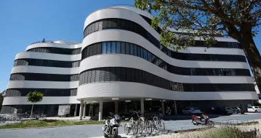 Das Synus-Gebäude, Standort der AWZ, in der Karlsruher Südstadt.