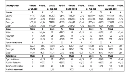 Die Zahlen vom Euronet-Betriebsvergleich geben ein etwas positiveres Bild ab. Hier kumulierten Umsätze in 2022 (371.477 Euro) um 1,9 Prozent über denen aus 2021 (364.716 Euro) und sogar über 21,6 Prozent über den Werten aus dem von Corona deutlich geprägteren Jahr 2020 (305.381). Allerdings ging auch hier die Zahl der Aufträge insgesamt leicht zurück (885 in 2022, 895 in 2021; -1,1 %), der Durchschnittspreis pro Brille legte dafür aber um 3,9 Prozent zu.