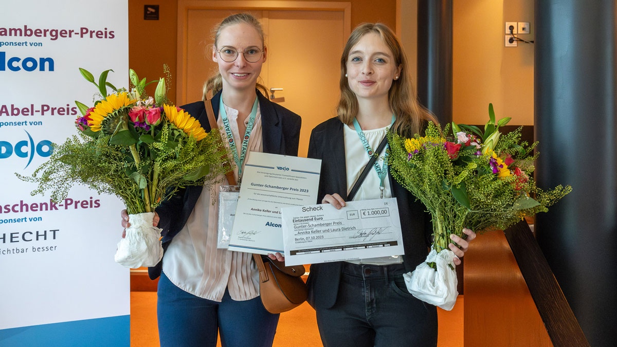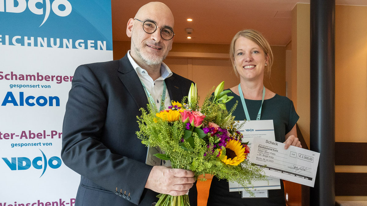Ein wichtiger Teil des Jahreskongresses der VDCO im Rahmen der Sichtkontakte 2023 ist die Würdigung von Forschungs- und Abschlussarbeiten im Bereich der Optometrie und Kontaktlinsen. So vergibt die Vereinigung jährlich drei Preise an den Nachwuchs. Der Peter-Abel-Preis 2023 wurde in diesem Jahr von der VDCO gesponsert und mit 2.000 Euro dotiert. Die diesjährige Preisträgerin Dr. Birgit Fritz konnte sich mit ihrer eingereichten Dissertation über „Die Brillenmikrobiota und ihre hygienische Bedeutung“ gegen die anderen Bewerbungen durchsetzen. Den Gunter-Schamberger-Preis für die beste Abschlussarbeit von Studierenden, den Alcon Pharma mit 1.000 Euro dotierte, erhielten in diesem Jahr Laura Dietrich und Annika Keller mit ihrer gemeinsamen Masterarbeit „Entwicklung einer Lern-App für die Optometrie und deren praktische Erprobung: LAOLA“ (die DOZ berichtete online sowie in Ausgaben 07|22). Den Rolf-Weinschenk-Preis für das beste Poster mit dem Themenschwerpunkt „Best Practice und Innovation in der Kontaktlinsenoptik“ ging in diesem Jahr an Jessica Gruhl. Ihre Arbeit „Orthokeratology and Vision Requirements for Driver Licensing“ gewann die Abstimmung während des Kongresses deutlich. Das Preisgeld in Höhe von 500 Euro sponsert schon seit Jahr die Hecht Contactlinsen GMbH.