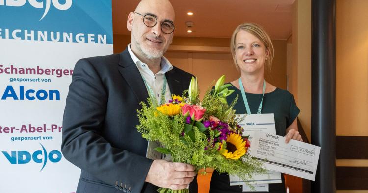 Der 1. Vorsitzender der VDCO Stephan Hirschfeld übergab den Peter-Abel-Preis an Dr. Birgit Fritz (r.).